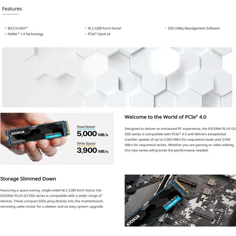 اس اس دی اینترنال PCIe Gen4 x4 کیوکسیا مدل EXCERIA PLUS G3 ظرفیت 1 ترابایت