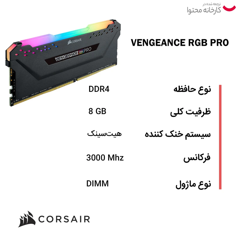 رم دسکتاپ DDR4 دو کاناله 3200 مگاهرتز CL16 کورسیر مدل VENGEANCE RGB PRO ظرفیت 16 گیگابایت