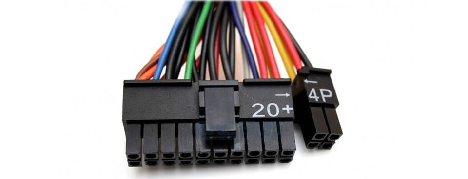 – کانکتور مادربرد: کانکتورهای مادربرد به سه گروه ۲۰پین، ۲۴پین و ۴+۲۰پین تقسیم میشوند که ممکن است یک پاور یکی از این موارد را داشته باشد. همانطور که از نام کانکتور برمیآید، وظیفهی آن تامین انرژی مورد نیاز مادربرد و قطعاتی است که بهصورت غیرمستقیم انرژی خود را تامین میکنند. معمولا مادربردهای قدیمی از کانکتورهای ۲۰پین استفاده میکنند و مانیتورهای جدید از طریق کانکتور ۲۴پین برای تامین انرژی بهره میبرند. بسیاری از شرکتهای تولیدکنندهی پاور برای آنکه بتوانند به خوبی نیاز همهی کاربران را پوشش دهند از کانکتور ۴+۲۰پین بهره میبرند. این کانکتور درواقع دارای ۲۰ پین است که ۴ پین به صورت جداگانه به آن متصل میشود.
