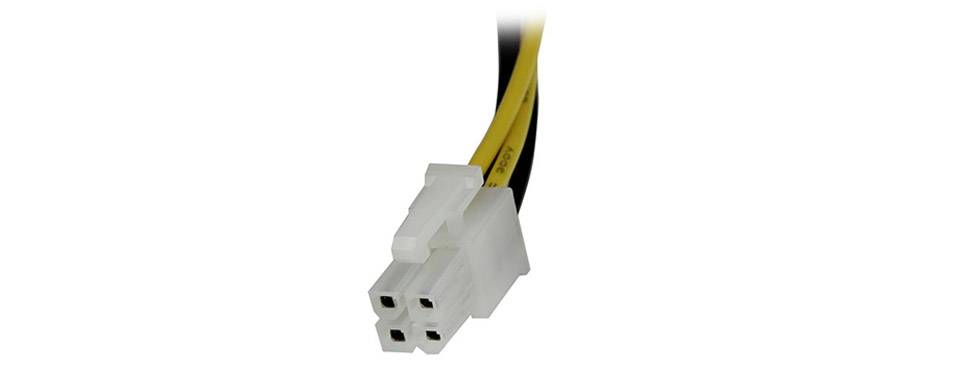 – کانکتور ۴پین ATX: در مادربردهای قدیمی و پایینرده علاوهبر کانکتورهای ۲۰پین یک کانکتور ۴پین ۱۲ولت برای تامین انرژی مورد نیاز قطعات وجود دارد. این کانکتور دارای ۲ پین با گوشههای گرد و ۲ پین با گوشههای زاویهدار است که با دو کابل مشکی و دو کابل زرد از پاور به مادربرد متصل میشوند.