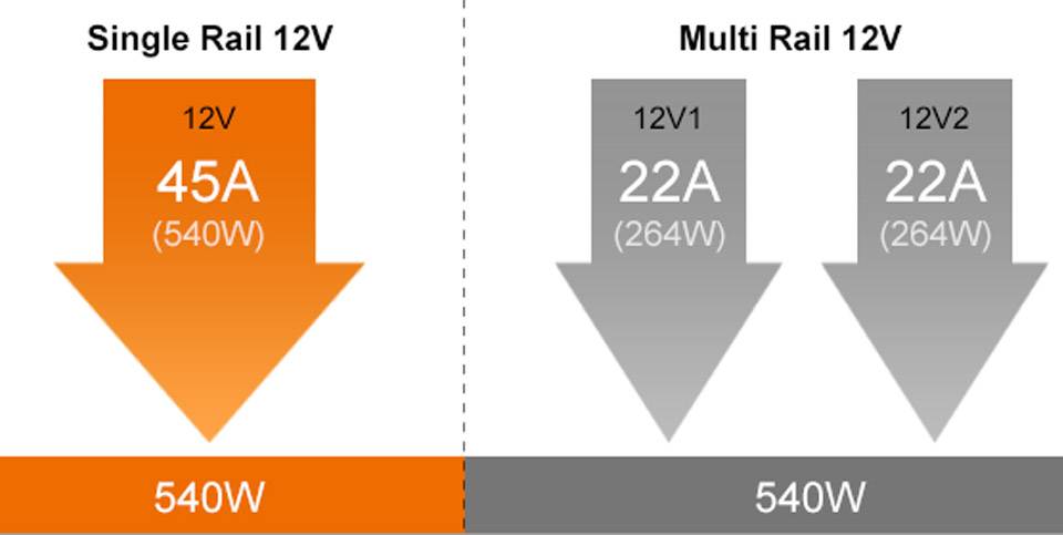 پاورها بهصورت تکریل و چندریل در بازار موجود هستند. در پاورهای تکریل هر کدام از قطعات میتوانند بدون در نظر گرفتن نوع کانکتور به میزان دلخواه از شدت جریان بهره ببرند. این موضوع باعث میشود که هیچگاه تجهیزاتی مانند کارت گرافیک با کمبود انرژی مواجه نشوند. تکریل بودن خالی از مشکل هم نیست و ممکن است مقدار زیادی جریان به یک قطعه وارد و باعث آسیبدیدن قطعات یا حتی سوختن آنها شود. در پاورهای چندریل هر کدام از ریلها محدود به ارائهی مقدار مشخصی شدت جریان هستند تا آسیبی به قطعات وارد نشود. باید به این نکته اشاره شود که با توجه به میزان جریان متفاوت در هر کدام از ریلها در پاورهای چندریل، توجه ویژهای برای اسمبل کردن پاور در کامپیوتر نیاز خواهد بود. به بیان بهتر، کاربر باید دانش لازم برای تخصیص هر قطعه با توجه به میزان انرژی مصرفی به ریل مورد نظر را داشته باشد. پاورهای تکریل و چندریل هر کدام دارای مزایا و معایبی هستند که با توجه به نیاز و سطح دانش سختافزاری خود میتوان اقدام به تهیهی هر کدام کرد.