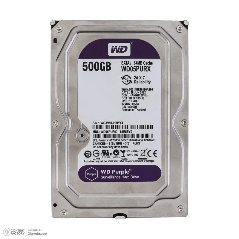 هارد دیسک اینترنال وسترن دیجیتال مدل WD05PURX ظرفیت 500 گیگابایت