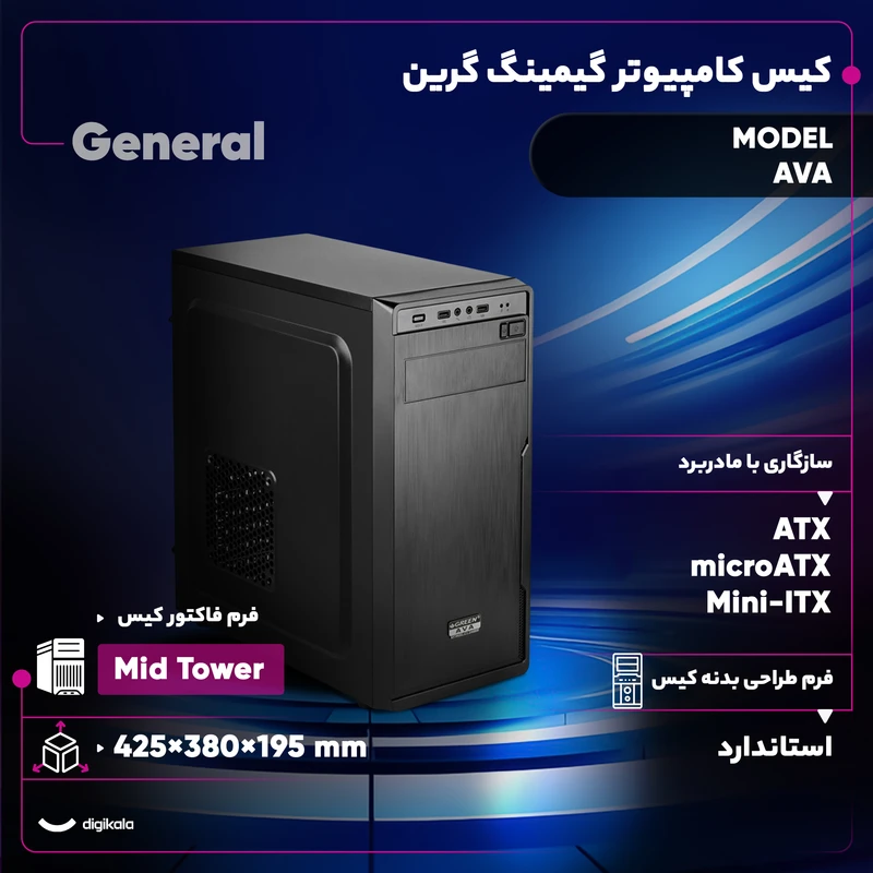 کیس کامپیوتر گرین مدل AVA