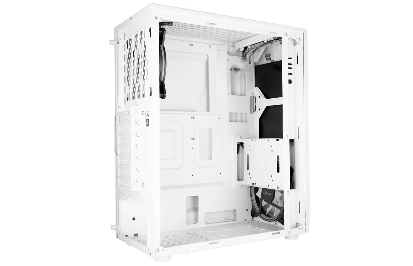 حداکثر ارتفاع خنک‌کننده پردازنده ۱۵۵ میلی‌متر و طول کارت گرافیک تا ۳۲۰ میلی‌متر فضای کافی برای قطعات استاندارد فراهم می‌کند. در بخش ذخیره‌سازی، یک جایگاه ۲.۵ اینچی و یک جایگاه ۳.۵ اینچی نصب SSD و HDD را ممکن می‌سازد. پنل جلویی با دو پورت USB ۲.۰، یک پورت USB ۳.۰ و دو جک ۳.۵ میلی‌متری دسترسی سریع به تجهیزات جانبی را فراهم می‌کند. سیستم مدیریت کابل، فیلتر گرد و غبار، پایه‌های ضد لرزش و لبه‌های نرم داخلی، تجربه‌ای مرتب و راحت از اسمبل و استفاده ایجاد می‌کنند. رنگ تمام سفید و نورپردازی RGB جلوه بصری جذاب و مدرن به کیس داده است و این مجموعه، FG-523W را به گزینه‌ای ایده‌آل برای گیمرها و کاربران حرفه‌ای تبدیل کرده است.