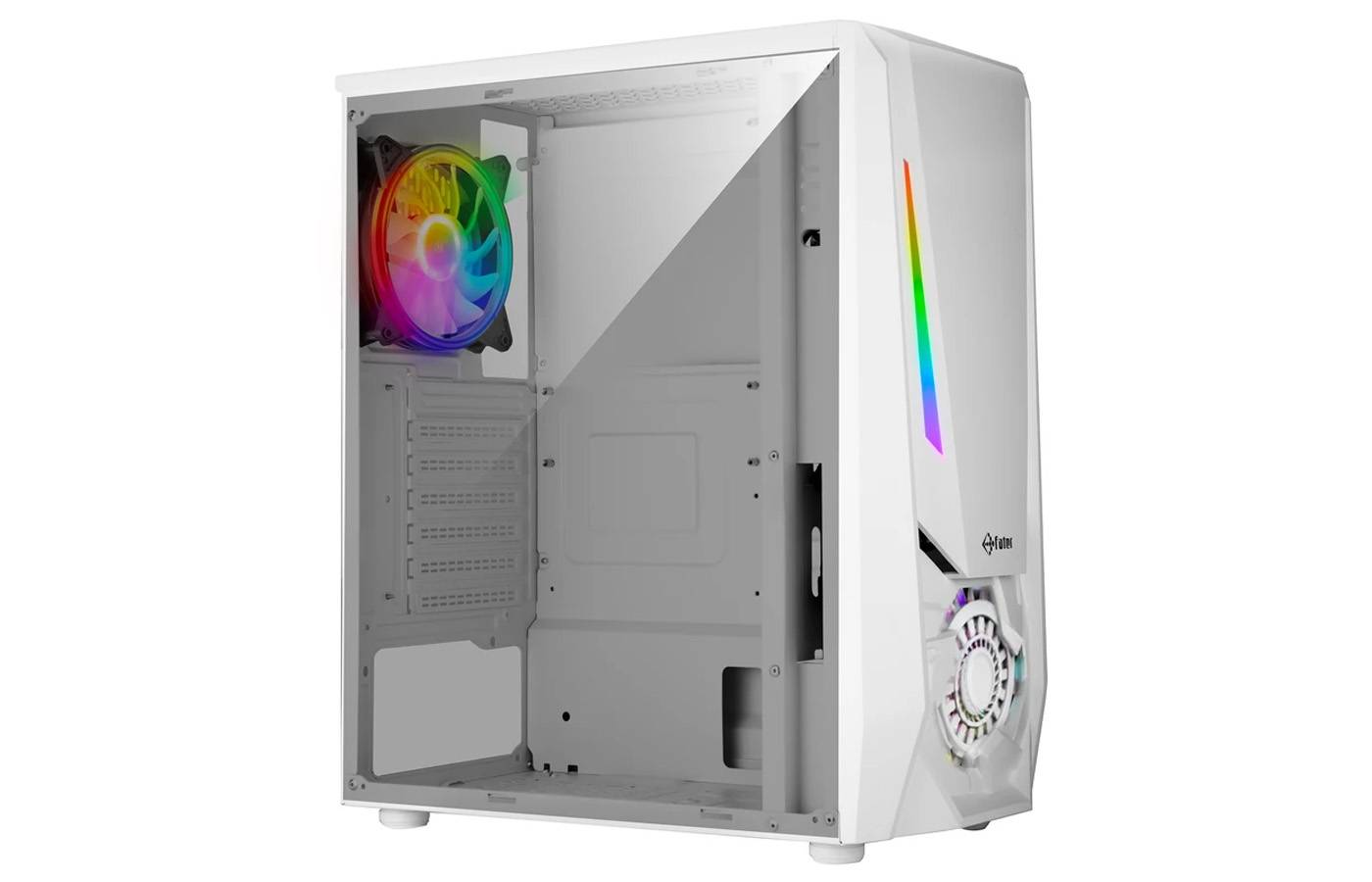 کیس فاطر مدل FG-523W نمونه‌ای مدرن و جمع‌وجور از سری Mid Tower است که برای گیمرها و کاربران حرفه‌ای طراحی شده و ترکیبی از طراحی زیبا، تهویه مؤثر و امکانات کاربردی ارائه می‌دهد. با ابعاد ۳۷۰x۱۸۵x۴۱۰ میلی‌متر و وزن ۳.۵ کیلوگرم، این کیس سبک و قابل حمل است و امکان قرارگیری روی میزهای گیمینگ کوچک یا فضاهای محدود را فراهم می‌کند، بدون اینکه از استحکام یا ظرفیت نصب قطعات کاسته شود. بدنه ترکیبی از فلز و شیشه، نمای داخلی سیستم را به نمایش گذاشته و جلوه‌ای مدرن و چشم‌نواز ایجاد می‌کند. طراحی ویترینی با پنل شیشه‌ای یک طرفه، علاوه بر زیبایی، دسترسی به قطعات و مدیریت کابل‌ها را ساده‌تر کرده و فضای داخلی مرتب و سازمان‌یافته باقی می‌ماند.