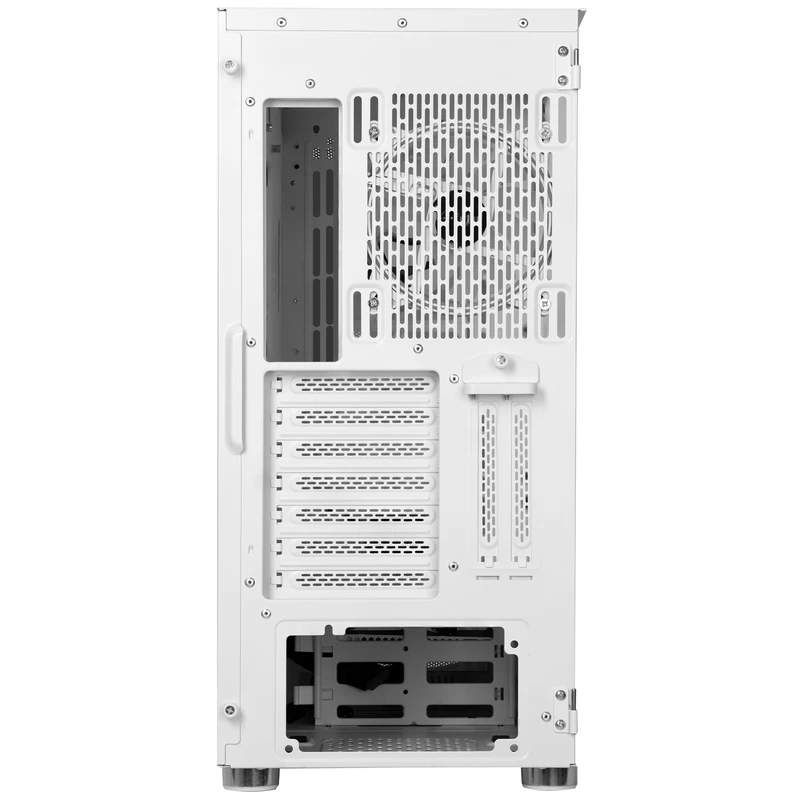 فضای داخلی کیس به گونهای طراحی شده که از ۹ اسلات توسعه پشتیبانی میکند و امکان نصب کارتهای گرافیک، کارت صدا یا کارتهای شبکه اضافی را فراهم میکند. بخش ذخیرهسازی شامل سه جایگاه ۲.۵ اینچی بدون نیاز به پیچ و طراحی براکتگونه و قابلیت نصب سریع، و بدون سینی برای هاردهای ۳.۵ اینچی ارائه میشود. این طراحی سرعت نصب و ارتقا قطعات را بالا برده و کاربر میتواند بدون ابزار اضافی درایوهای خود را نصب یا جابجا کند.