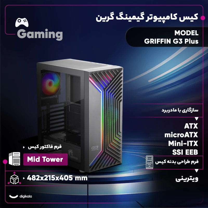 GRIFFIN G3 Plus ترکیبی از طراحی مدرن، تهویه قوی، نورپردازی جذاب و مدیریت حرفهای کابلها است و برای گیمرها و کاربران حرفهای که به دنبال کیس با کارایی بالا، انعطاف در اسمبل و قابلیت ارتقا هستند، گزینهای ایدهآل به شمار میرود.