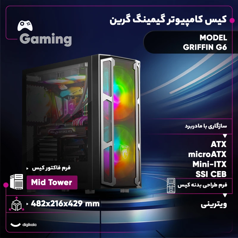 کیس کامپیوتر گیمینگ گرین مدل GRIFFIN G6